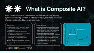 Composite ai goes beyond ml, combining different techniques to improve ai’s versatility and efficiency to solve a wider range of business problems. Ai leaders and teams must avoid only leveraging one ai technique and excluding others.